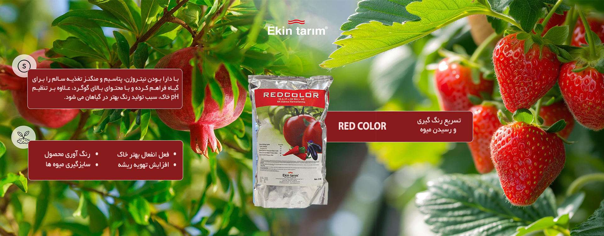 RED COLOR تلفیقی هنرمندانه از نیتروژن، پتاسیم، منگنز و درصـد بالایی از سـولفور اسـت که علاوه بر تامین نیازهاي ضروري گیاه، بواسطه درصد سولفور بالا باعث تنظیم سطح pH خاك خواهد شد در کنار مواد همراه منحصر به فرد که می تواند موجب تسریع رسیدگی و رنگ اندازی، خصوصا در میوه های رنگی مانند گوجه فرنگی، سیب و ... شود.