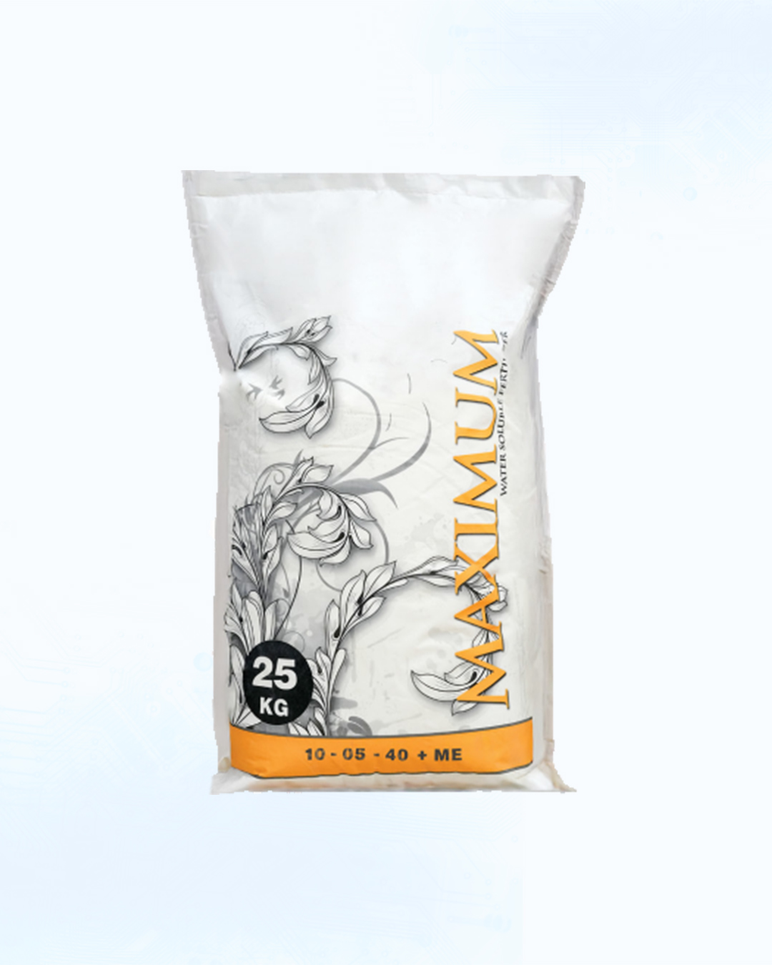 ماکزیمم 10-05-40 به عنوان منبعی بسیار با ارزش از پتاسیم با منشا نیترات پتاسیم در کنار افزودنی های منحصر به فرد به عنوان یک تامین کننده عنصر پتاسیم در سریعترین زمان ممکن از طریق کود آبیاری و محلولپاشی شناخته می شود. عاری بودن از کلر این ترکیب را جهت استفاده در مناطق با آب و خاک شور و گیاهان حساس به شوری مناسب کرده است.